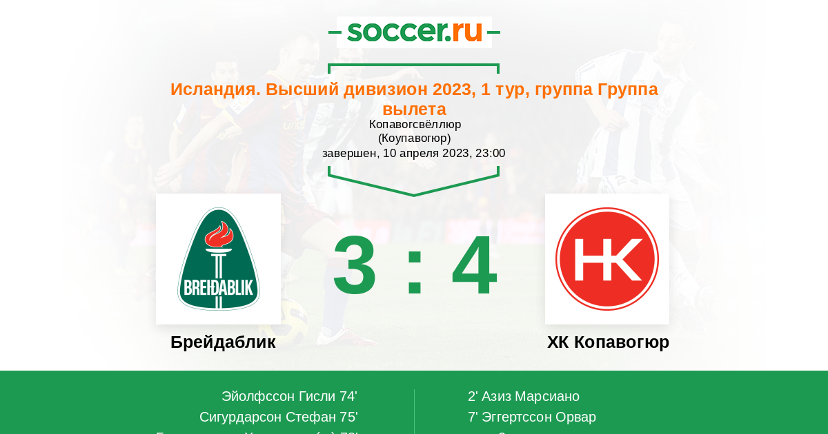 Брейдаблик - ХК Копавогюр: обзор матча 10 апреля 2023