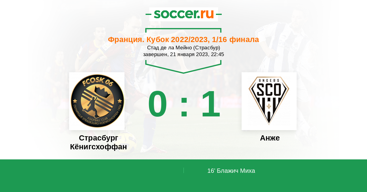 Страсбург Кёнигсхоффан - Анже: обзор матча 21 января 2023