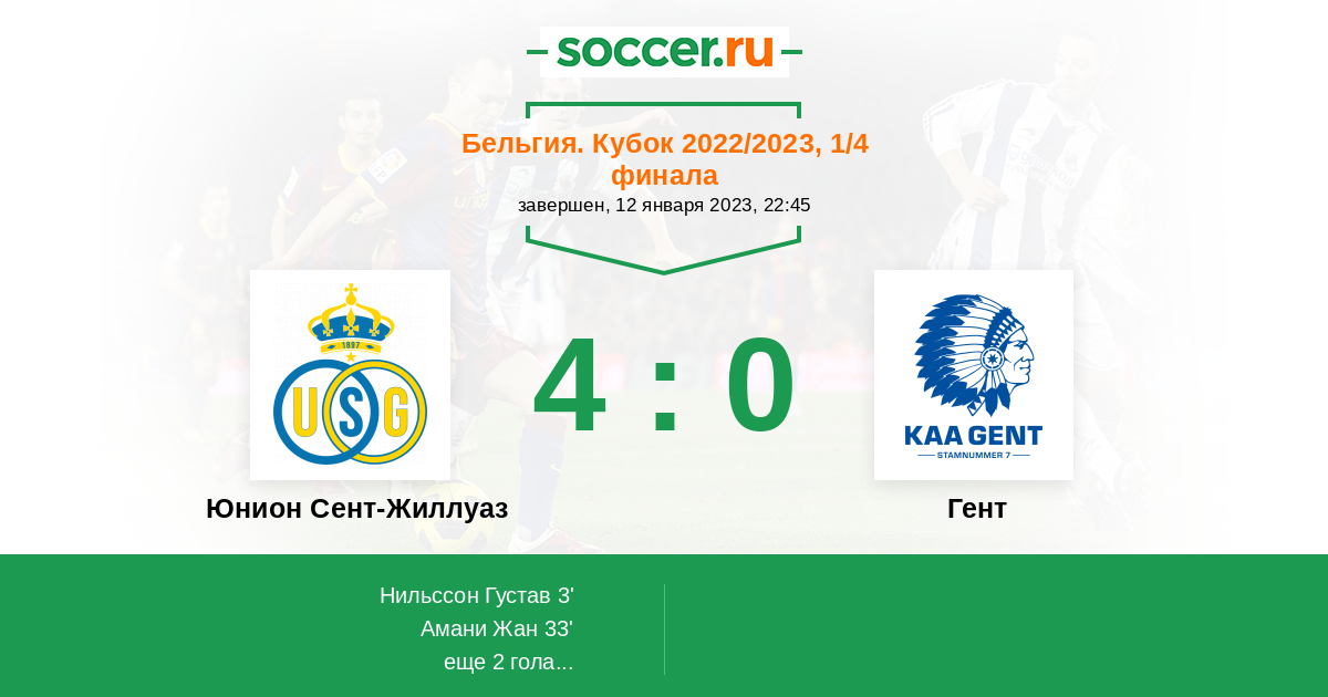 Юнион Сент-Жиллуаз - Гент: обзор матча 12 января 2023