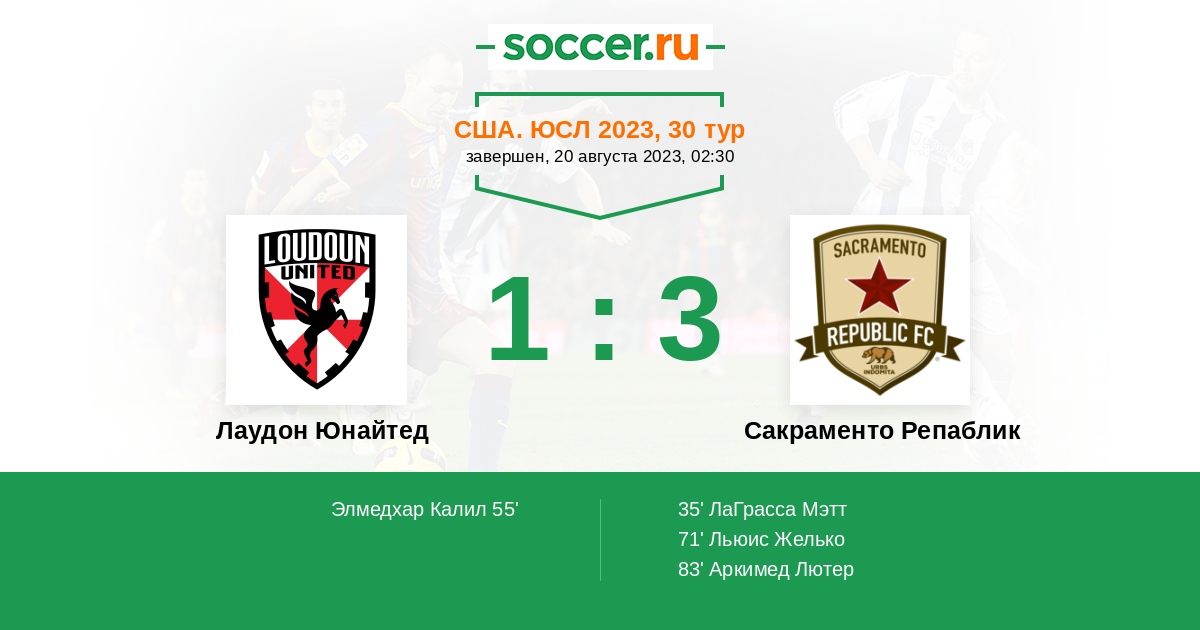 Лаудон Юнайтед - Сакраменто Репаблик: обзор матча 20 августа 2023