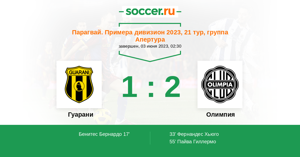 Гуарани - Олимпия: обзор матча 3 июня 2023