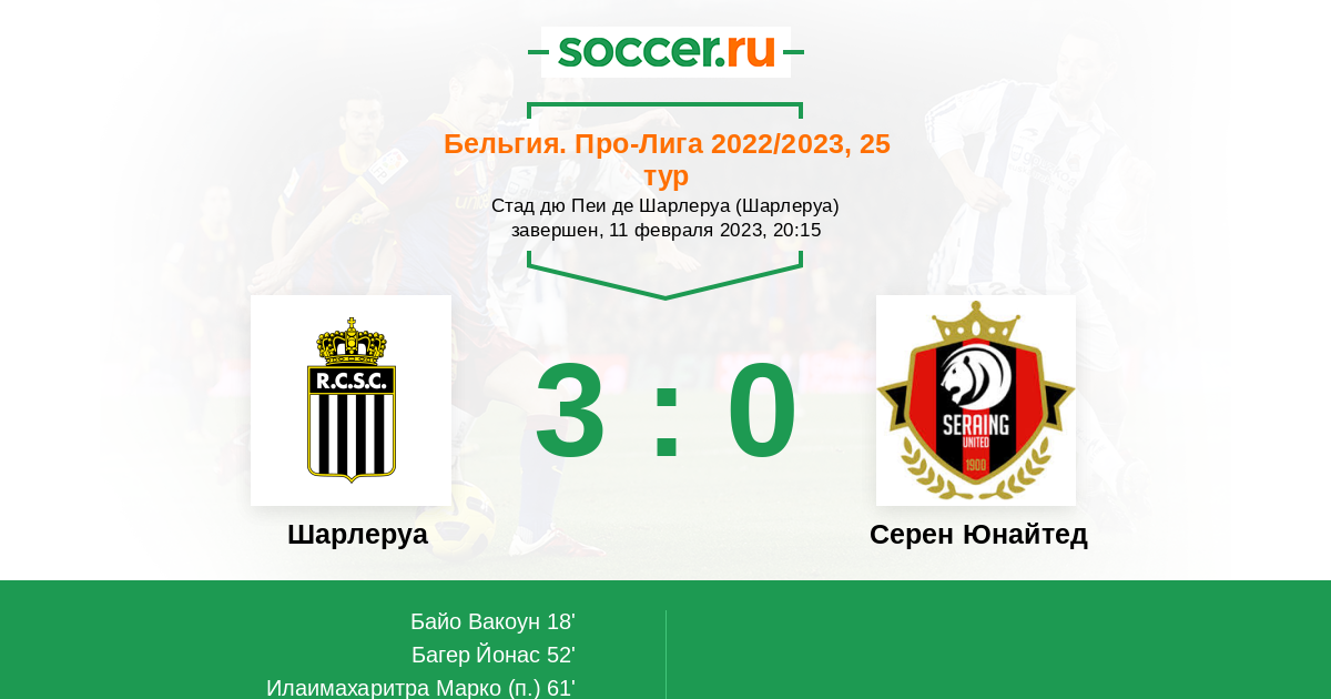 Шарлеруа - Серен Юнайтед: обзор матча 11 февраля 2023