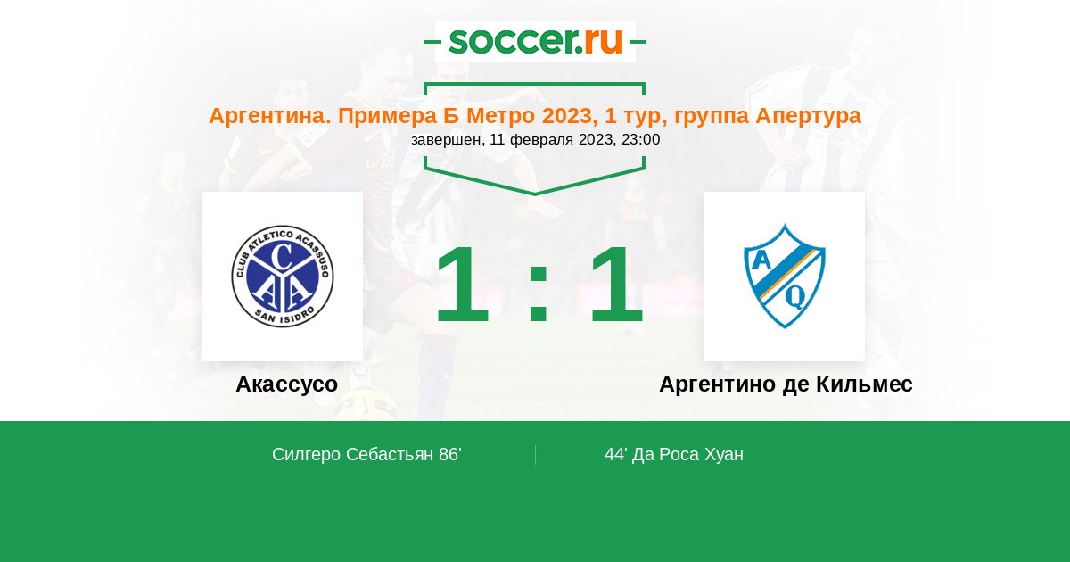 Акассусо - Аргентино де Кильмес: обзор матча 11 февраля 2023