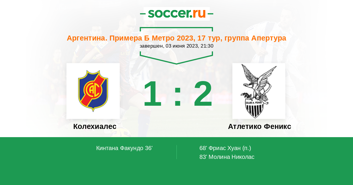 Колехиалес - Атлетико Феникс: обзор матча 3 июня 2023