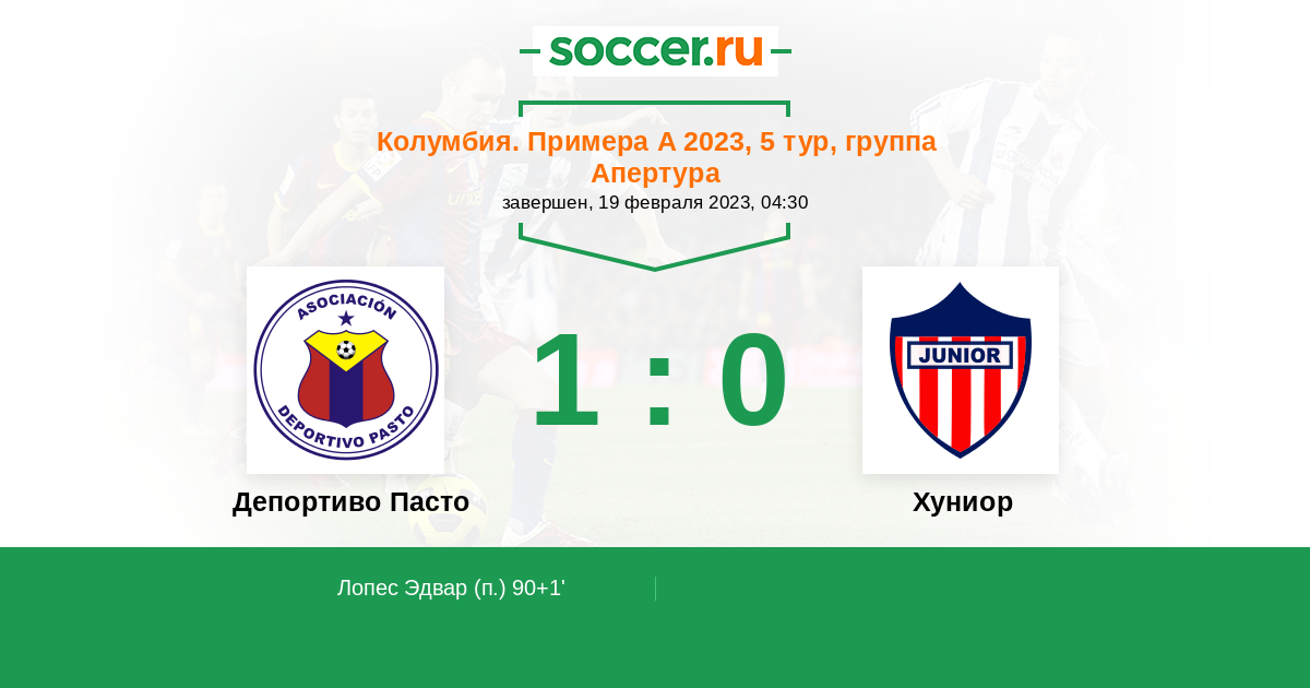 Депортиво Пасто - Хуниор: обзор матча 19 февраля 2023