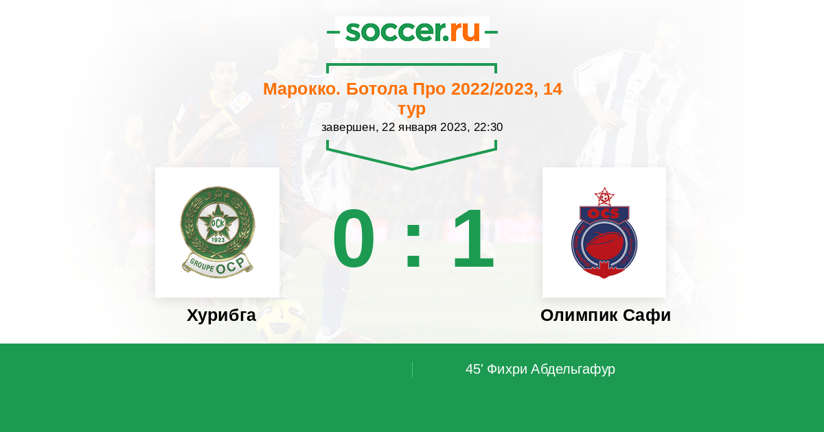 Хурибга - Олимпик Сафи: обзор матча 22 января 2023