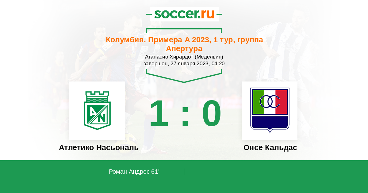 Атлетико Насьональ - Онсе Кальдас: обзор матча 27 января 2023