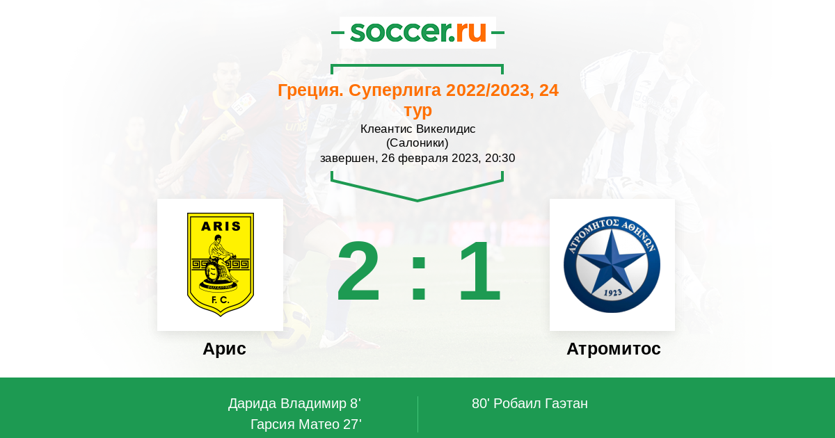 Арис - Атромитос: обзор матча 26 февраля 2023