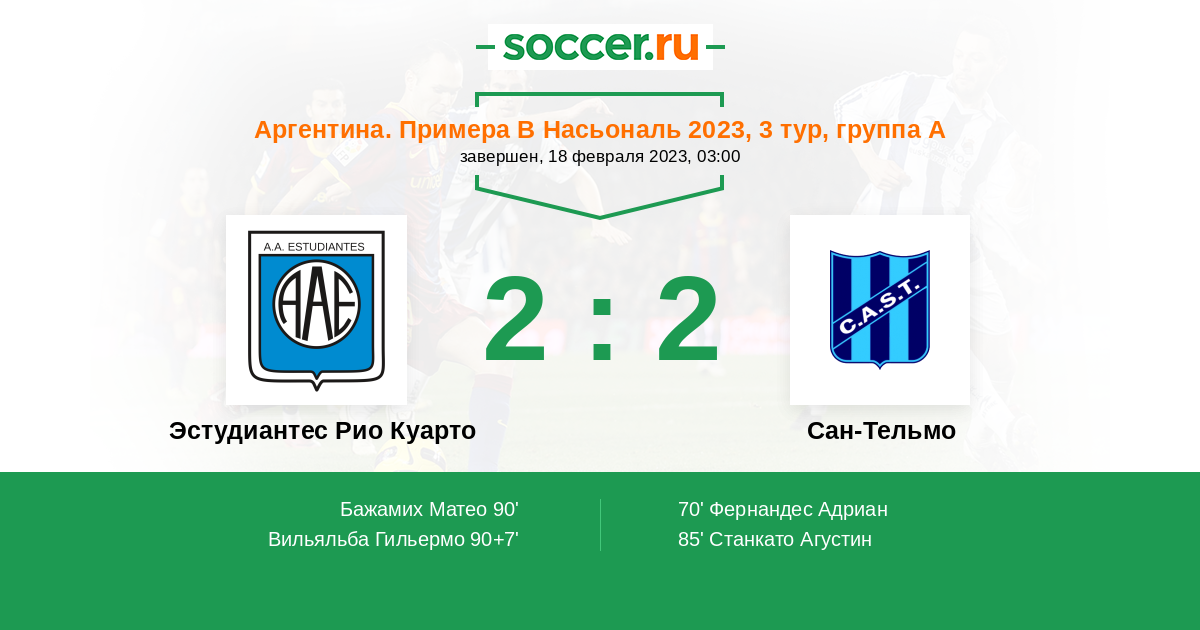 Эстудиантес Рио Куарто - Сан-Тельмо: обзор матча 18 февраля 2023