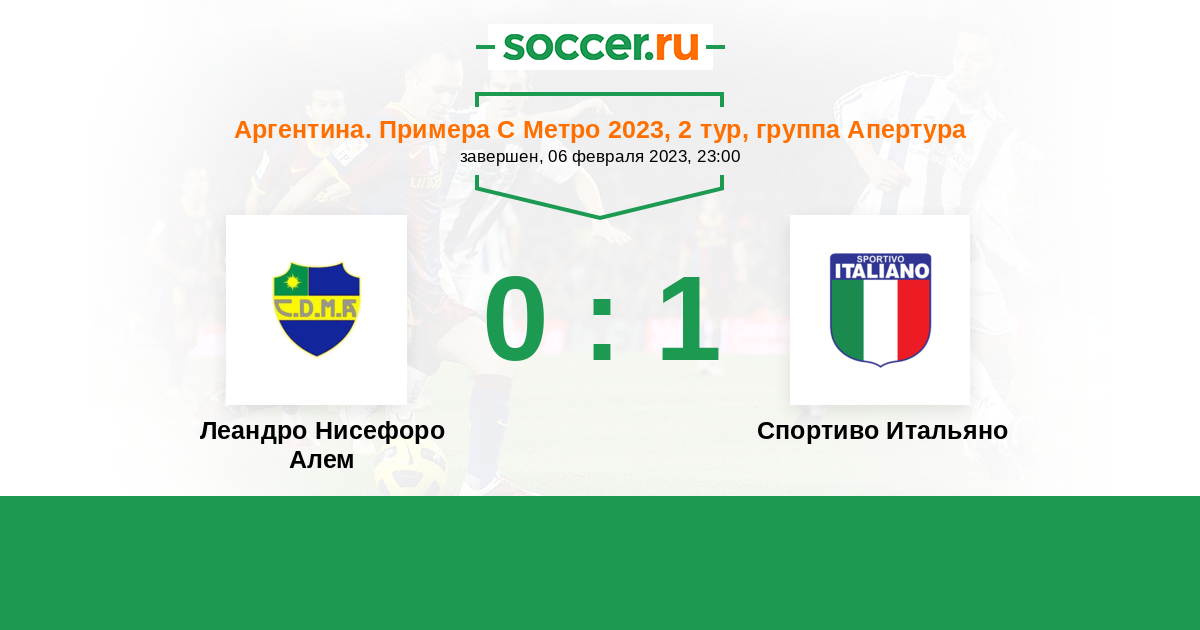 Леандро Нисефоро Алем - Спортиво Итальяно: обзор матча 6 февраля 2023