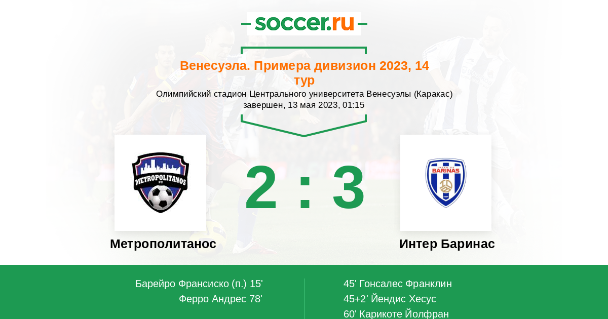 Метрополитанос - Интер Баринас: обзор матча 13 мая 2023