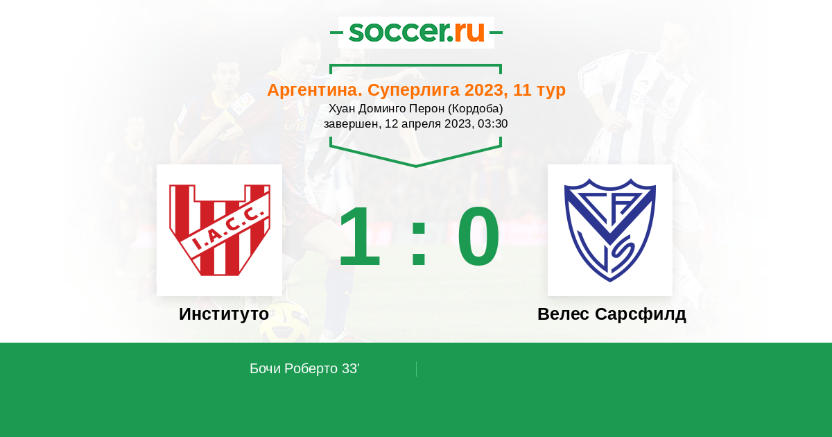 Институто - Велес Сарсфилд: обзор матча 12 апреля 2023