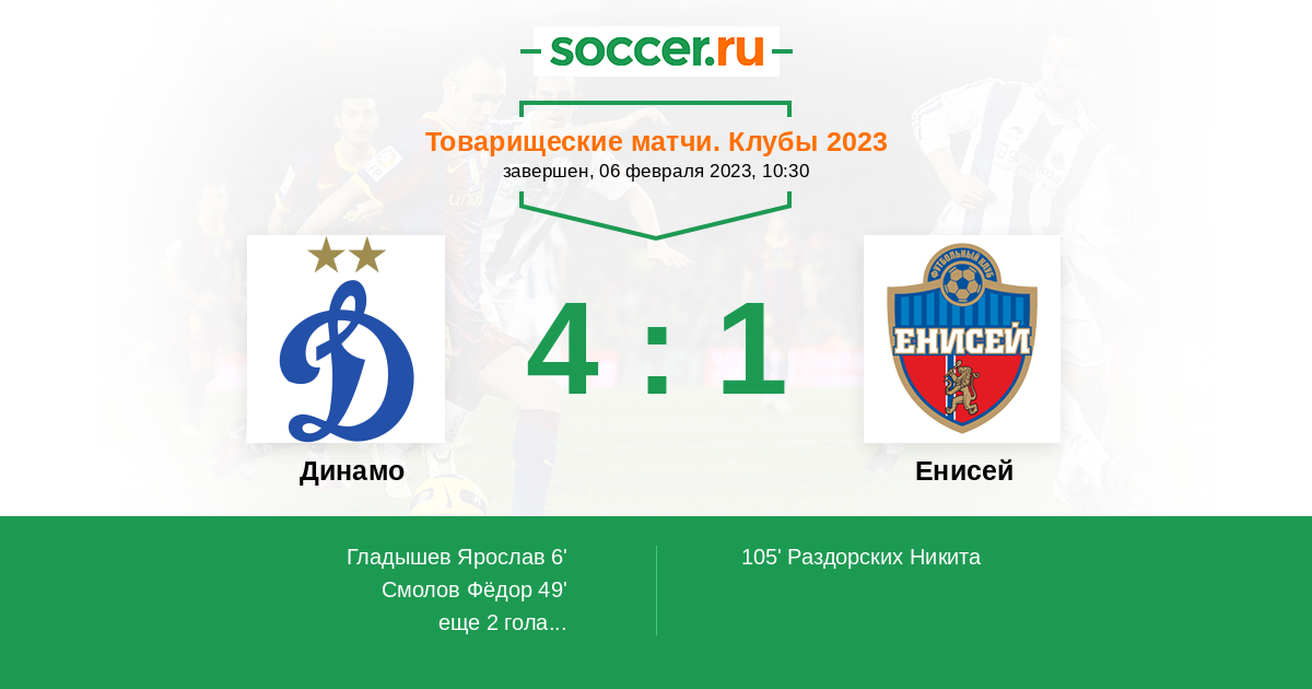 Динамо - Енисей: обзор матча 6 февраля 2023
