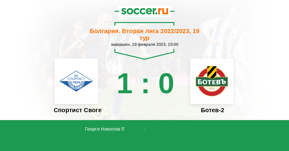 Спортист Своге - Ботев-2: обзор матча 19 февраля 2023