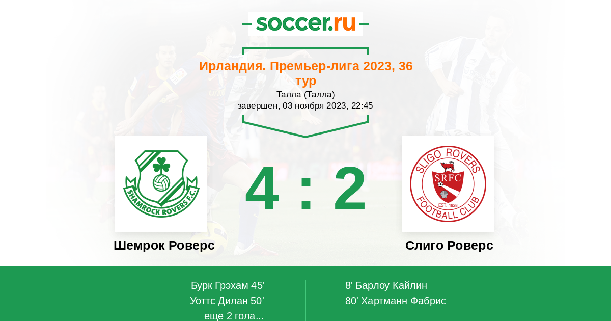 Шемрок Роверс - Слиго Роверс: обзор матча 3 ноября 2023