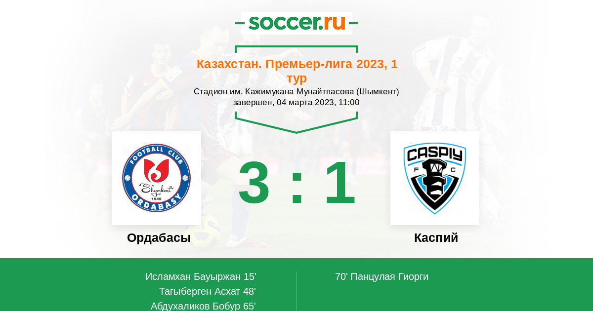 Ордабасы - Каспий: обзор матча 4 марта 2023