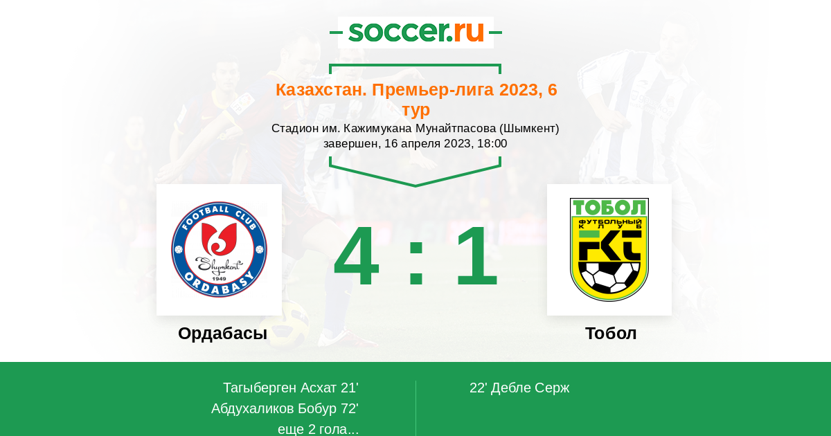 Ордабасы - Тобол: обзор матча 16 апреля 2023