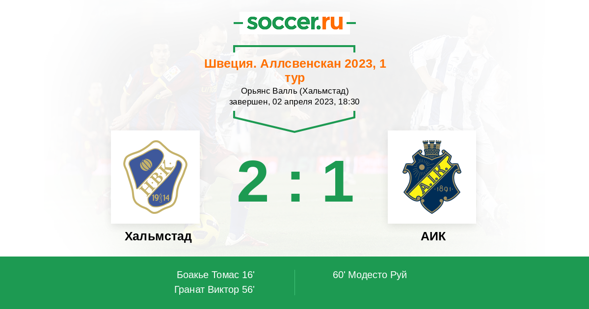 Хальмстад - АИК: обзор матча 2 апреля 2023