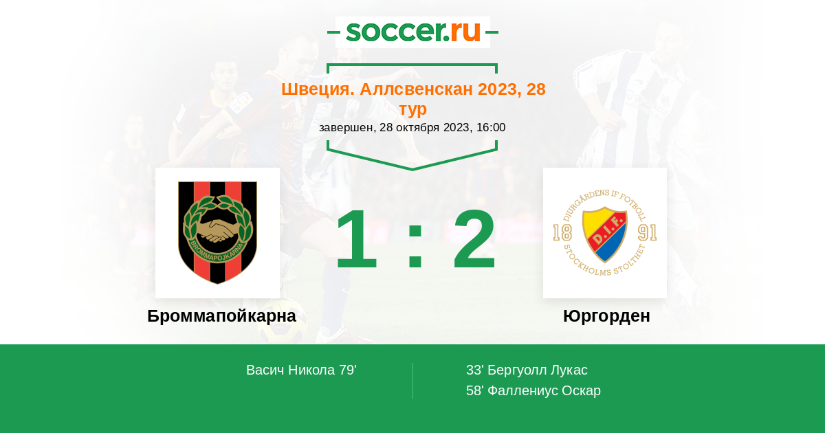 Броммапойкарна - Юргорден: обзор матча 28 октября 2023