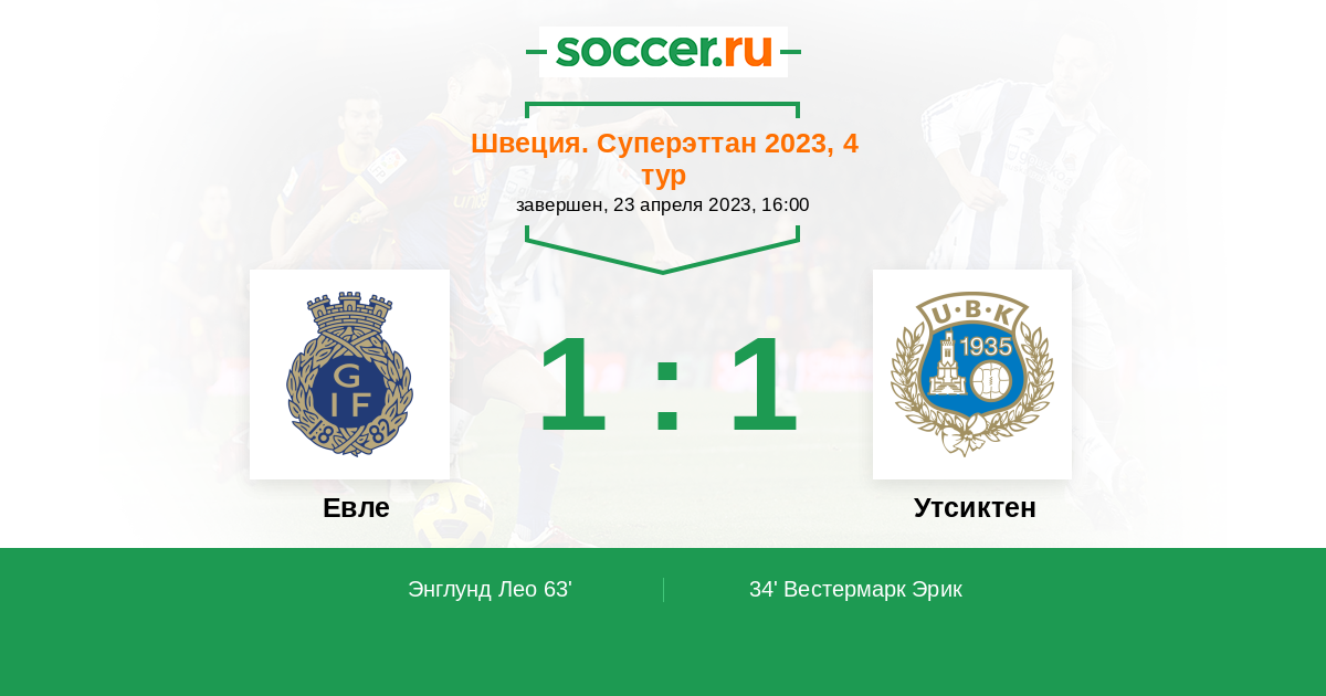 Евле - Утсиктен: обзор матча 23 апреля 2023