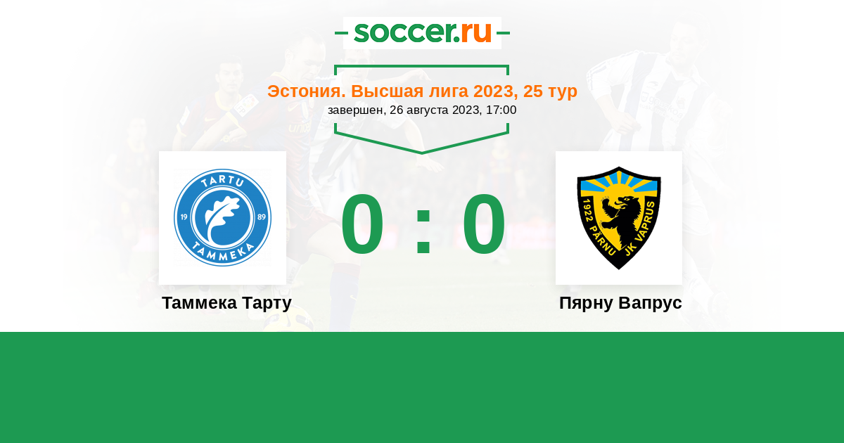 Таммека Тарту - Пярну Вапрус: обзор матча 26 августа 2023