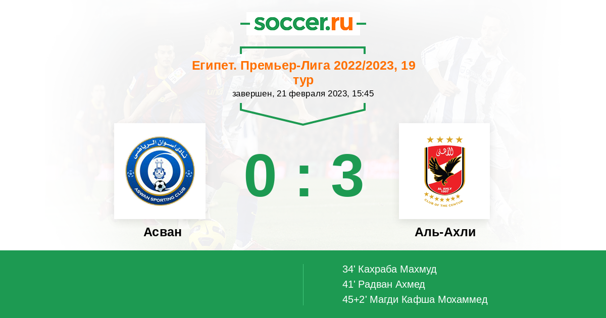 Асван - Аль-Ахли: обзор матча 21 февраля 2023