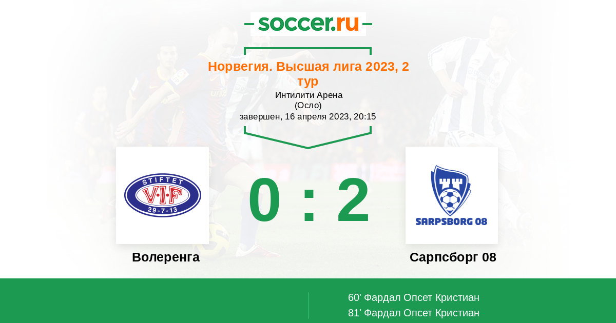 Волеренга - Сарпсборг 08: обзор матча 16 апреля 2023