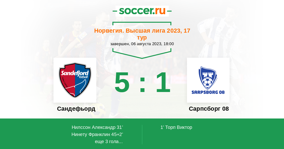 Сандефьорд - Сарпсборг 08: обзор матча 6 августа 2023
