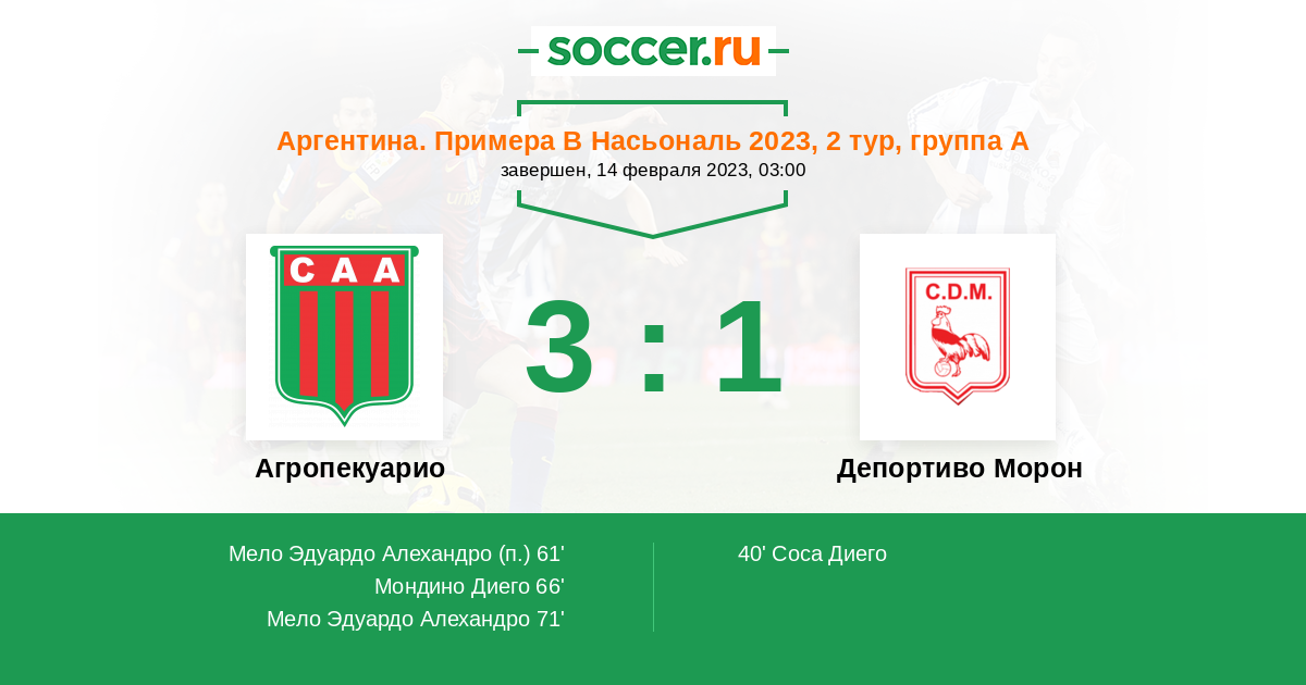 Агропекуарио - Депортиво Морон: обзор матча 14 февраля 2023