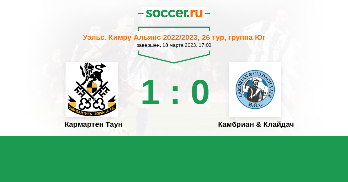 Кармартен Таун - Камбриан & Клайдач: обзор матча 18 марта 2023