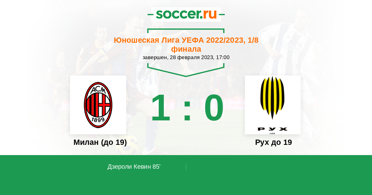 Милан (до 19) - Рух до 19: обзор матча 28 февраля 2023