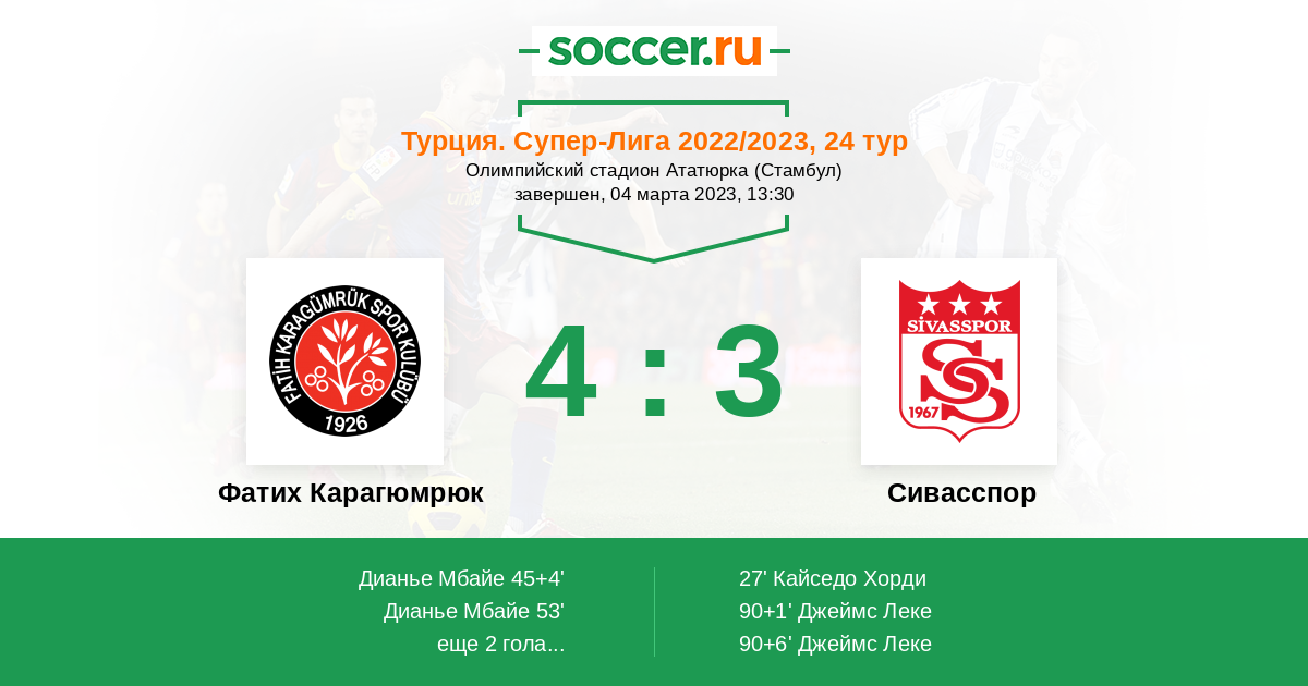 Фатих Карагюмрюк - Сивасспор: обзор матча 4 марта 2023