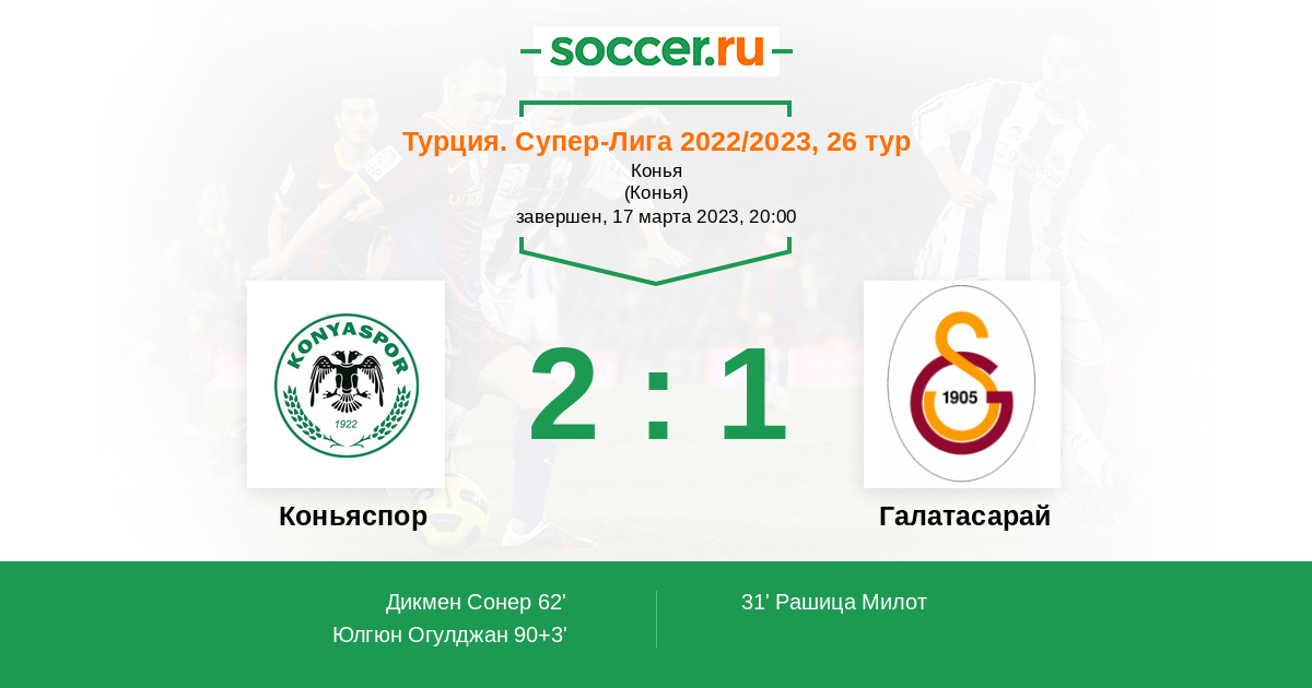 Коньяспор - Галатасарай: обзор матча 17 марта 2023
