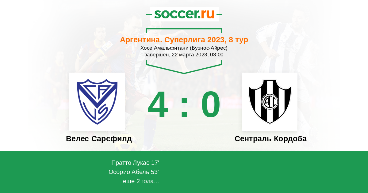 Велес Сарсфилд - Сентраль Кордоба: обзор матча 22 марта 2023