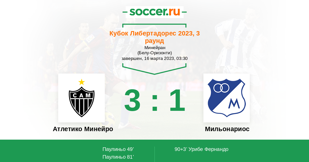 Атлетико Минейро - Мильонариос: обзор матча 16 марта 2023