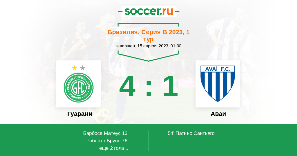 Гуарани - Аваи: обзор матча 15 апреля 2023