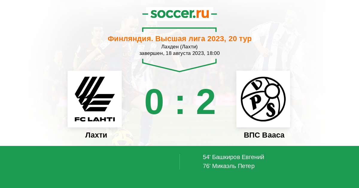 Лахти - ВПС Вааса: обзор матча 18 августа 2023