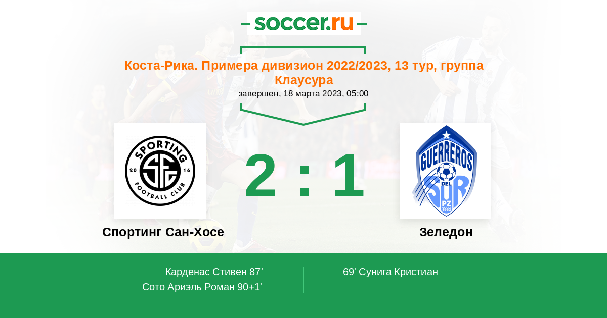 Спортинг Сан-Хосе - Зеледон: обзор матча 18 марта 2023