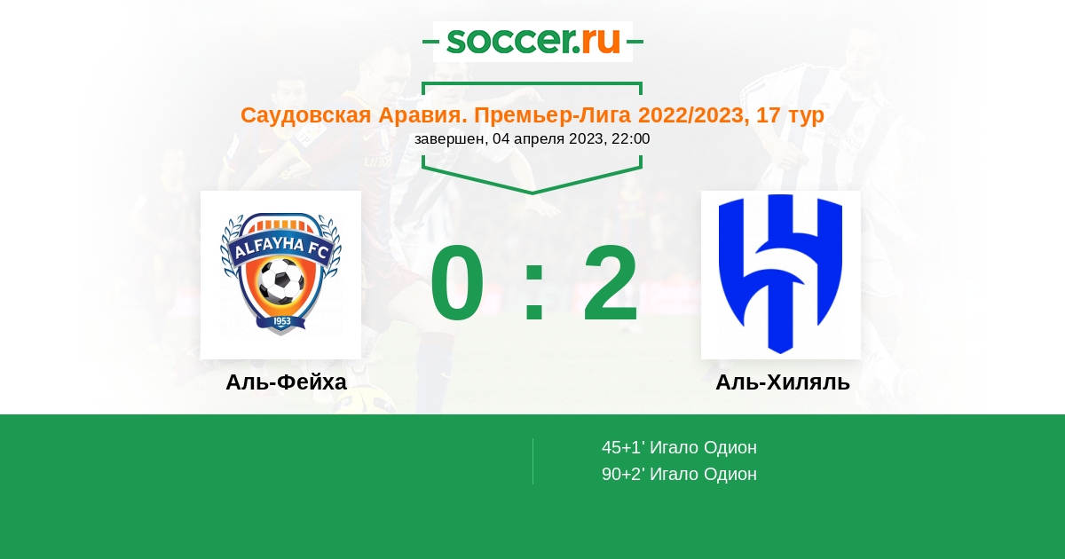 Аль-Фейха - Аль-Хиляль: обзор матча 4 апреля 2023