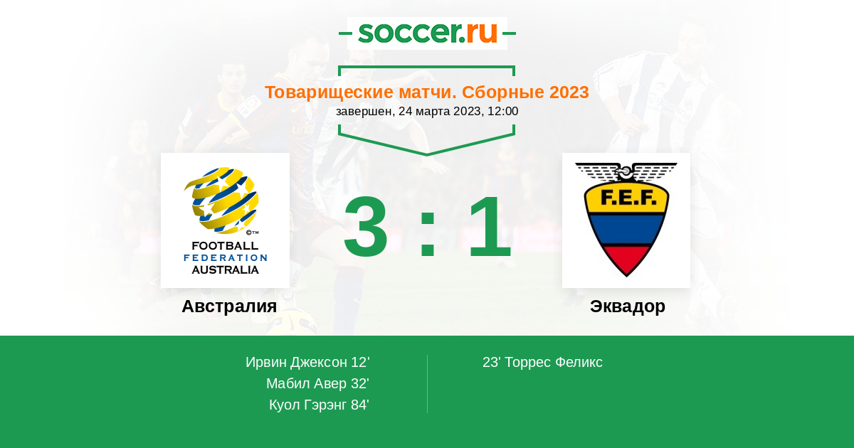 Австралия - Эквадор: обзор матча 24 марта 2023