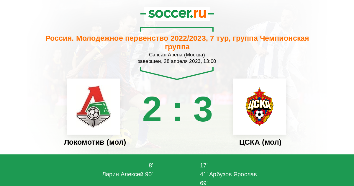 Локомотив (мол) - ЦСКА (мол): обзор матча 28 апреля 2023