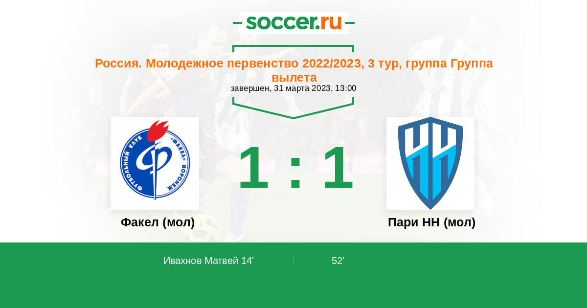 Факел (мол) - Пари НН (мол): обзор матча 31 марта 2023