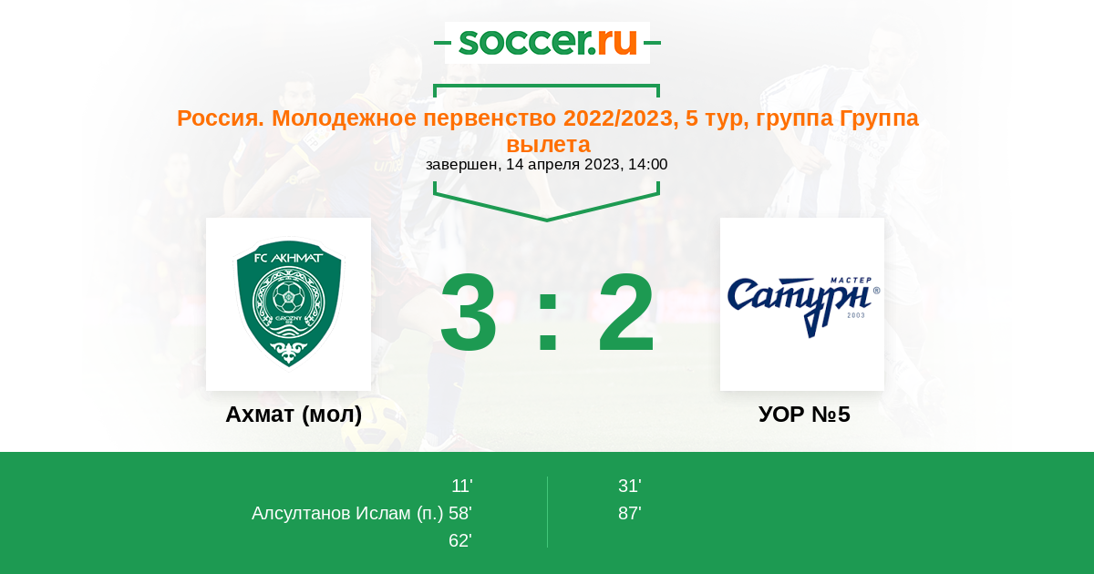 Ахмат (мол) - УОР №5: обзор матча 14 апреля 2023