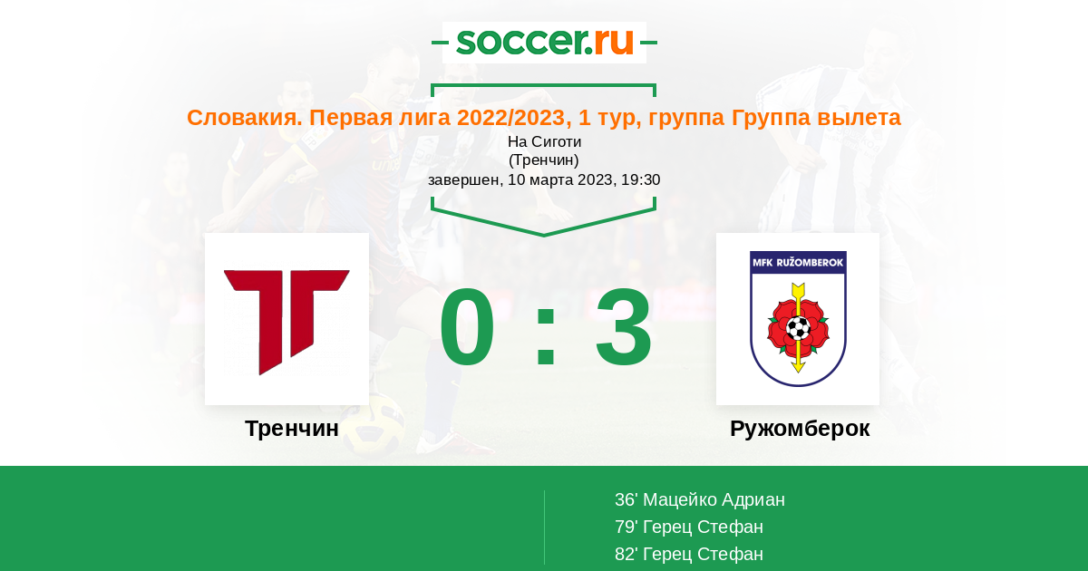 Тренчин - Ружомберок: обзор матча 10 марта 2023