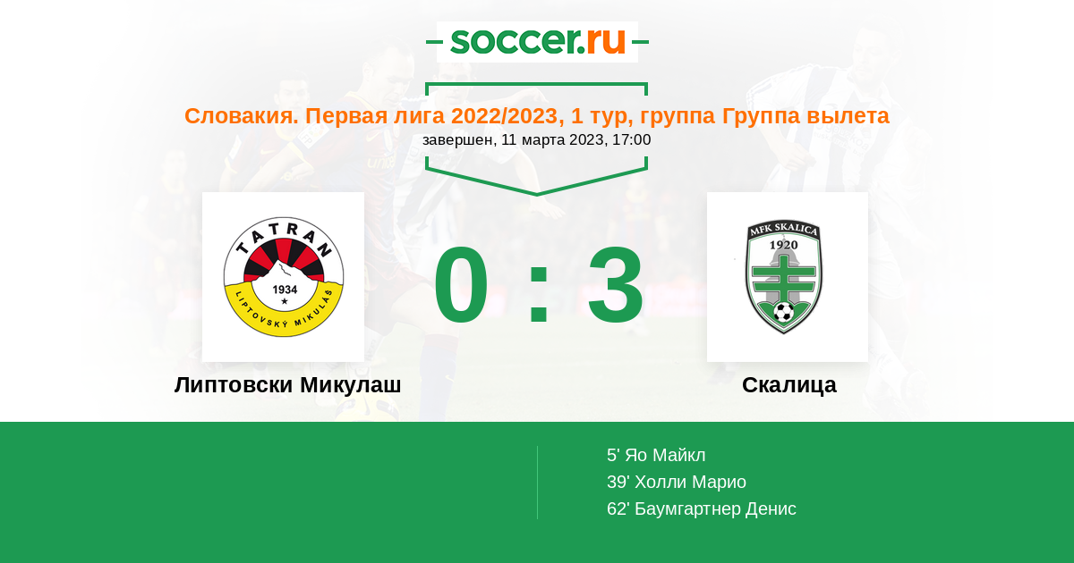 Липтовски Микулаш - Скалица: обзор матча 11 марта 2023