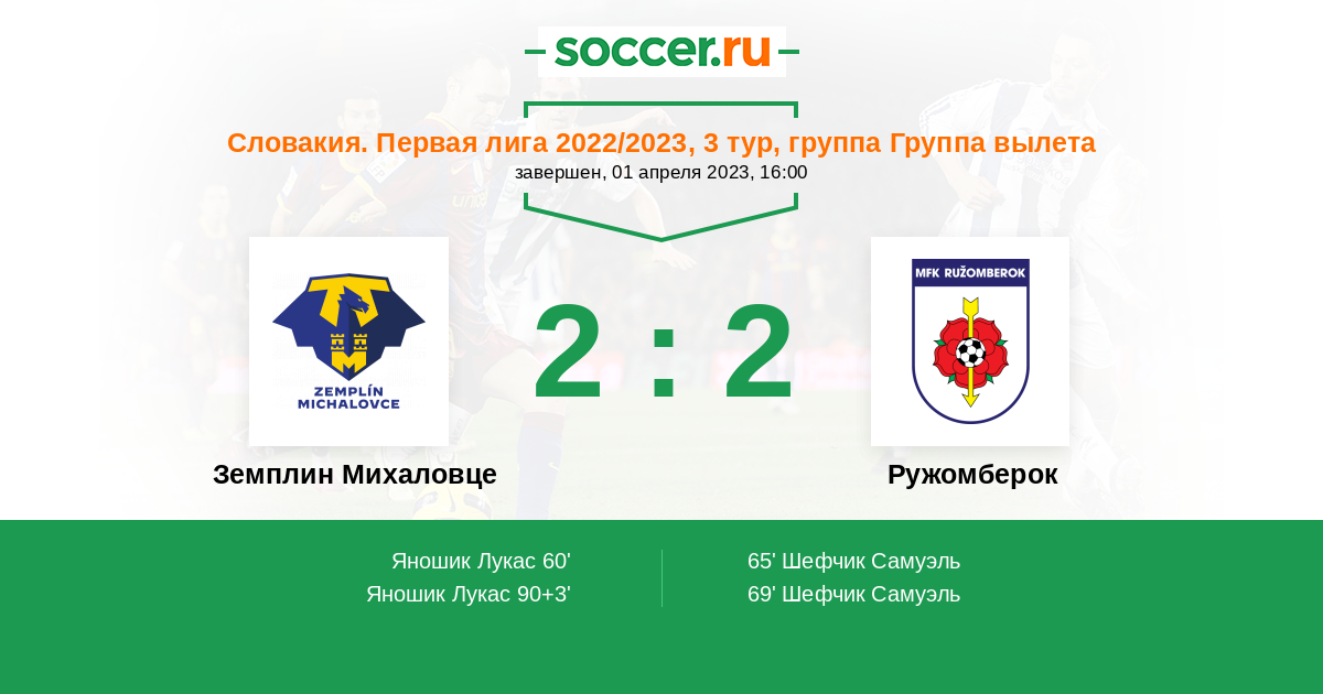 Земплин Михаловце - Ружомберок: обзор матча 1 апреля 2023