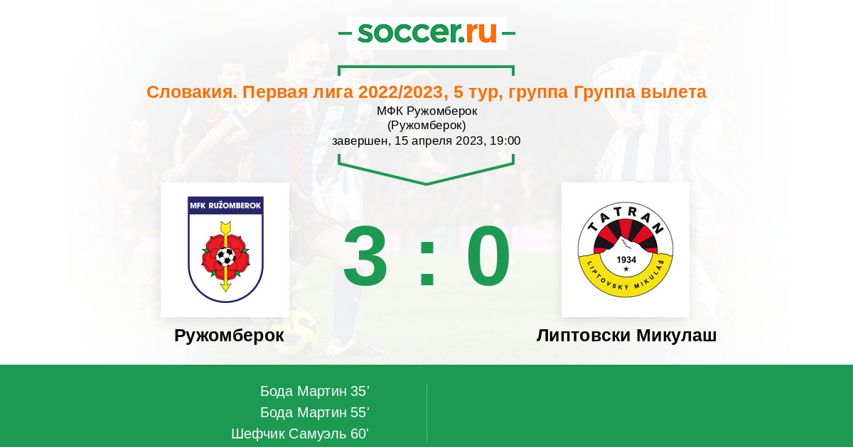 Ружомберок - Липтовски Микулаш: обзор матча 15 апреля 2023