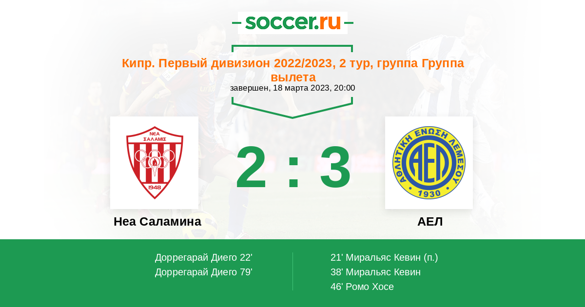 Неа Саламина - АЕЛ: обзор матча 18 марта 2023