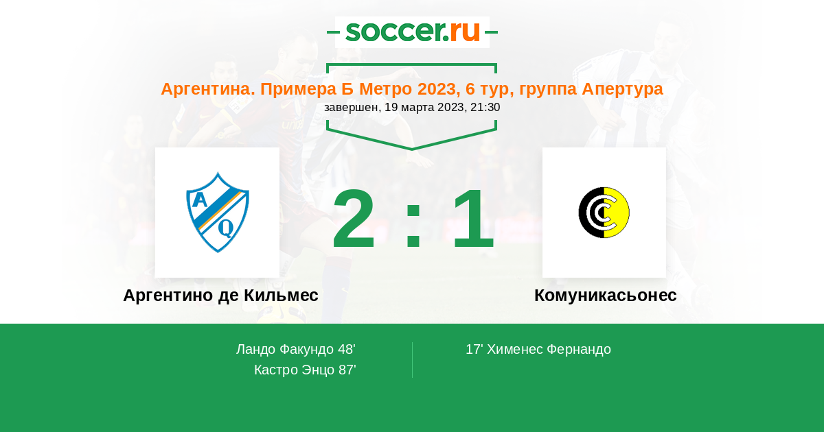 Аргентино де Кильмес - Комуникасьонес: обзор матча 19 марта 2023