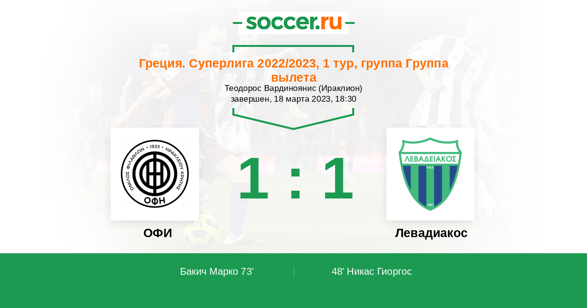 ОФИ - Левадиакос: обзор матча 18 марта 2023